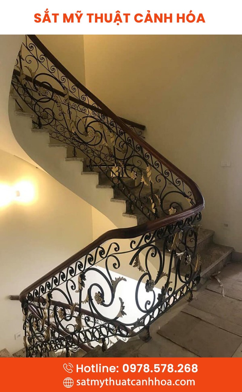 Cầu thang sắt mỹ thuật CTS-167 là sản phẩm nổi bật tại Sắt Nghệ Thuật Cảnh Hóa, kết hợp hài hòa giữa giá trị nghệ thuật và độ bền chắc chắn. Được chế tác từ sắt đặc cao cấp, uốn hoa văn tinh xảo, phủ sơn tĩnh điện chống gỉ, mỗi mẫu cầu thang đều mang đến vẻ đẹp độc bản và trường tồn theo thời gian.