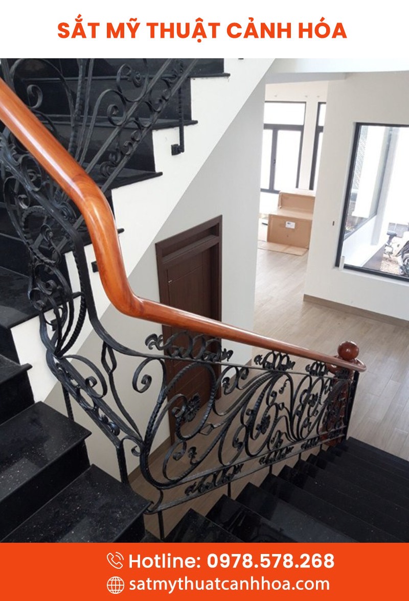 Cầu thang sắt mỹ thuật CTS-176 là sản phẩm nổi bật tại Sắt Nghệ Thuật Cảnh Hóa, kết hợp hài hòa giữa giá trị nghệ thuật và độ bền chắc chắn. Được chế tác từ sắt đặc cao cấp, uốn hoa văn tinh xảo, phủ sơn tĩnh điện chống gỉ, mỗi mẫu cầu thang đều mang đến vẻ đẹp độc bản và trường tồn theo thời gian.
